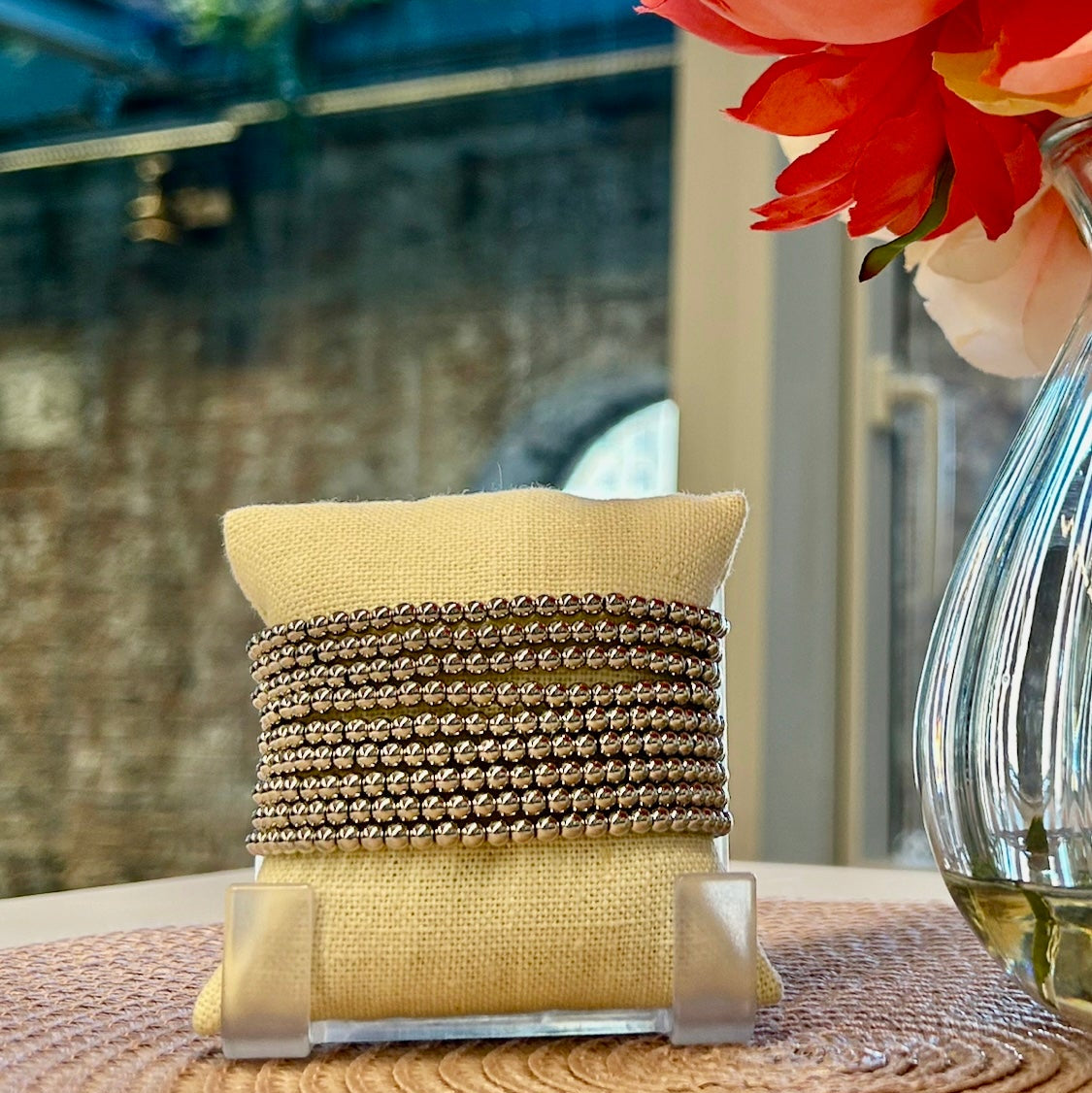 Lisa Stewart Jewelry 10 PC BEADED STETCH BRACELET SET - Silver