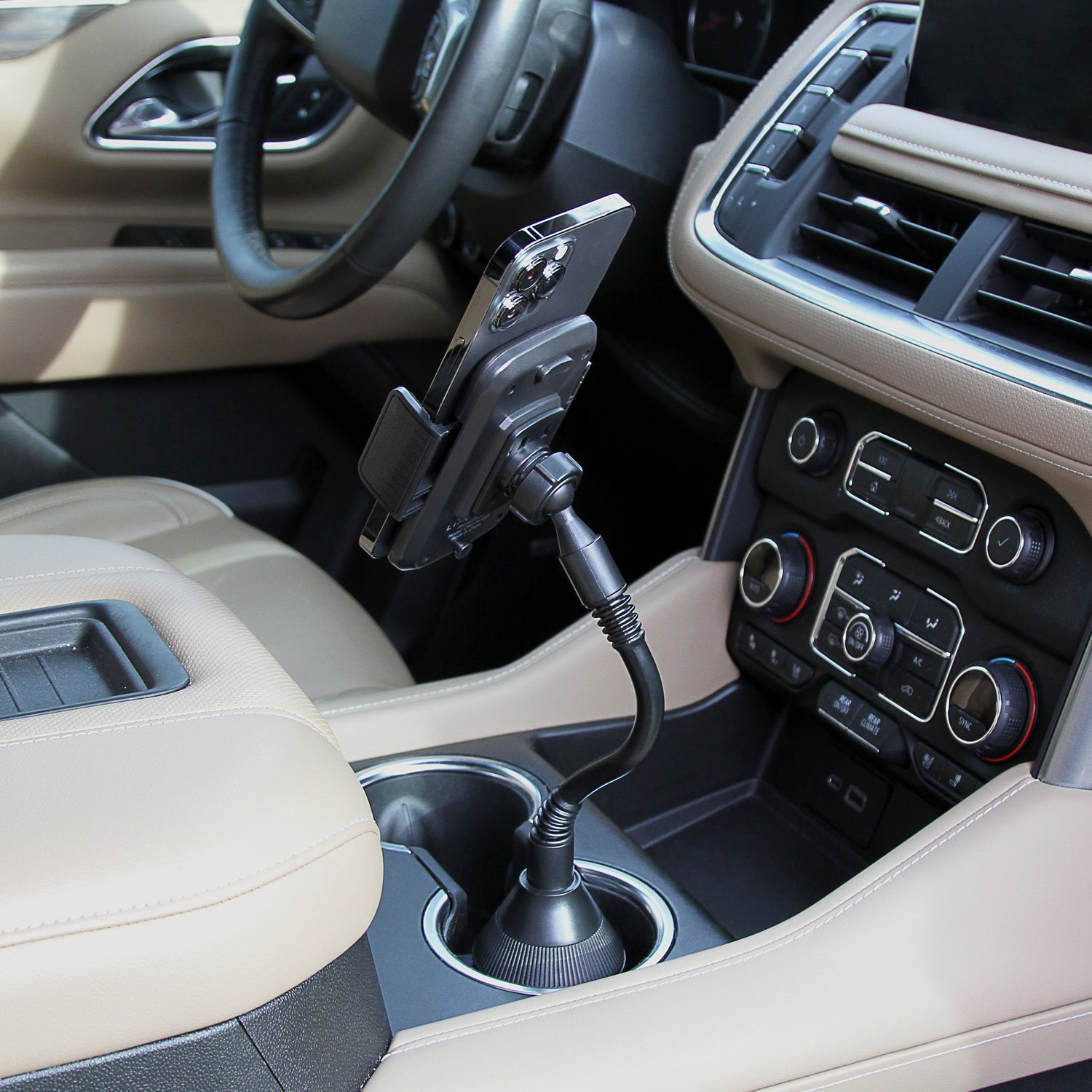 The adjustable base locks into virtually any cup holder, and the arms expand up to 3.5in wide to fit most phone types. The Air Vent Clip creates a 2-in-1 mounting solution and works with vertical and horizontal air vents!