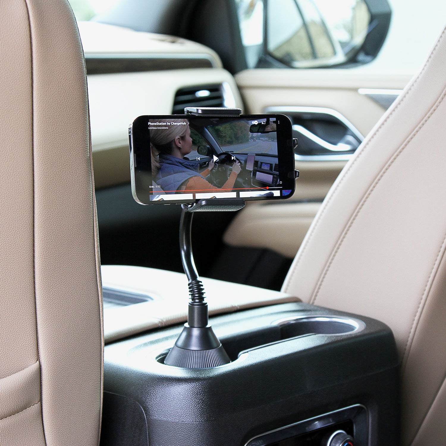 Go hands-free while on the road with the Limitless PhoneStation. Achieve the perfectly positioned phone display for optimal viewing by using the Adjustable Cup Holder Base or Air Vent Clip.