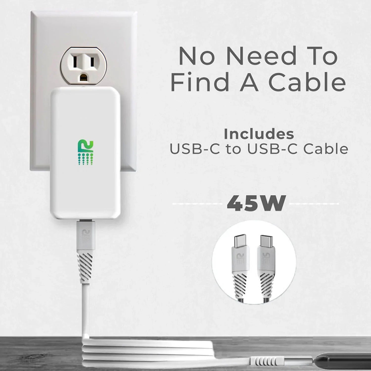 The Rush Charge GaN 45W USB-C Wall Charger is much more compact that an original 5W USB-C Charger. It takes up less space while giving you just as much power. Compatible with iPhone, Android smartphones, iPad Pro, MacBook, digital cameras, and other USB devices. Charges an iPhone 13 up to 3× faster than the original 5W charger.