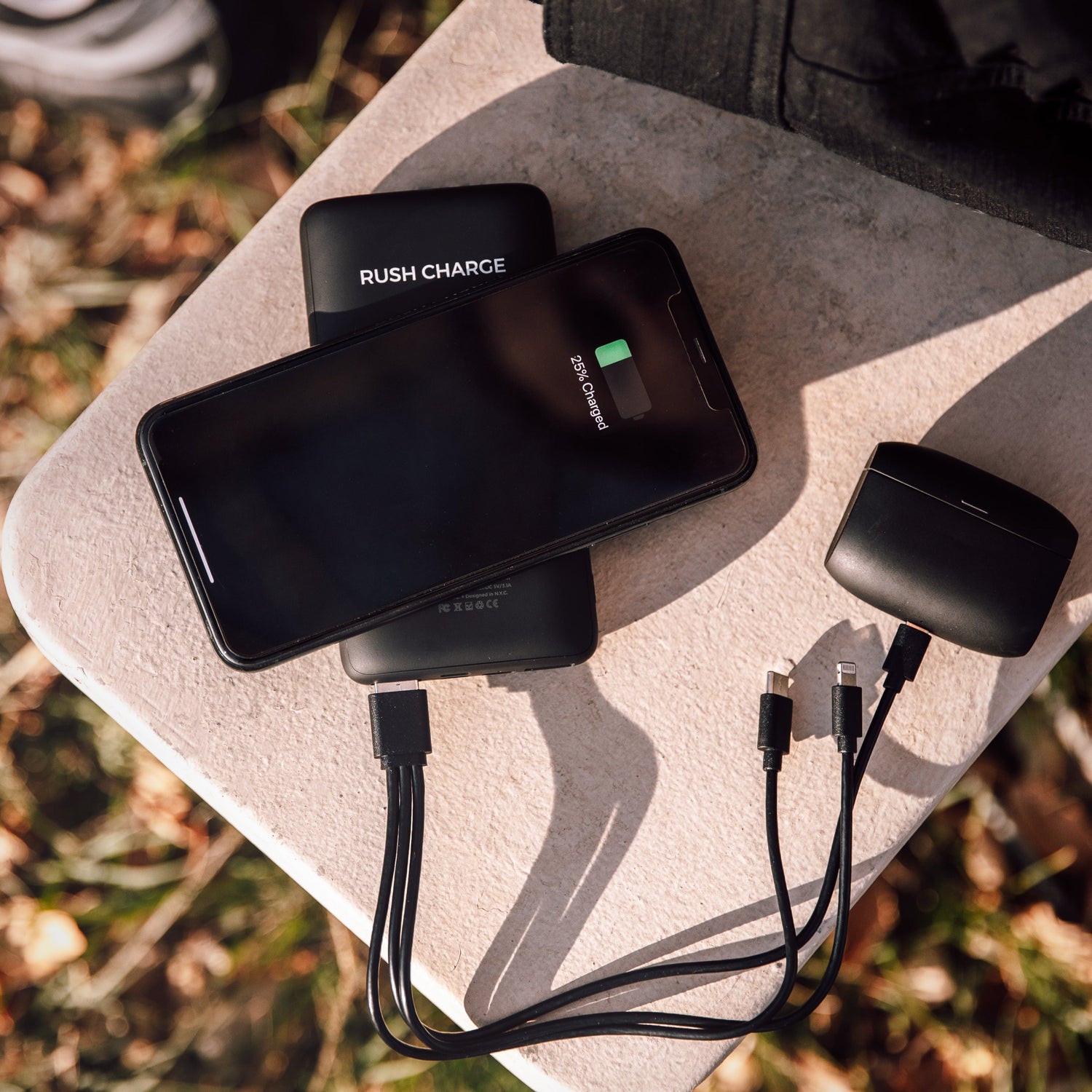 Rush Bank UVC is the "One Stop Shop" of portable devices, combining a diversity of convenient features, with extremely high-end quality. The Rush Bank Ultra includes a 10,000 mAh battery that can fully recharge most smartphones multiple times and can connect to most devices. Charge your Rush Bank Ultra and any connected device(s) at the same time with pass-through technology. It also can be recharged with any connection: Apple Lightning, USB Type-C, or Micro-USB. Recharge with Rush Bank UVC today.